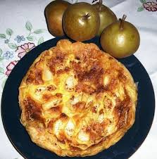 Corte, em lâminas finas, a pêra reservada, e disponha-a sobre a superfécie da tarte. Polvilhe com 1 colher de sopa de açúcar e leve ao forno durante 30 minutos.